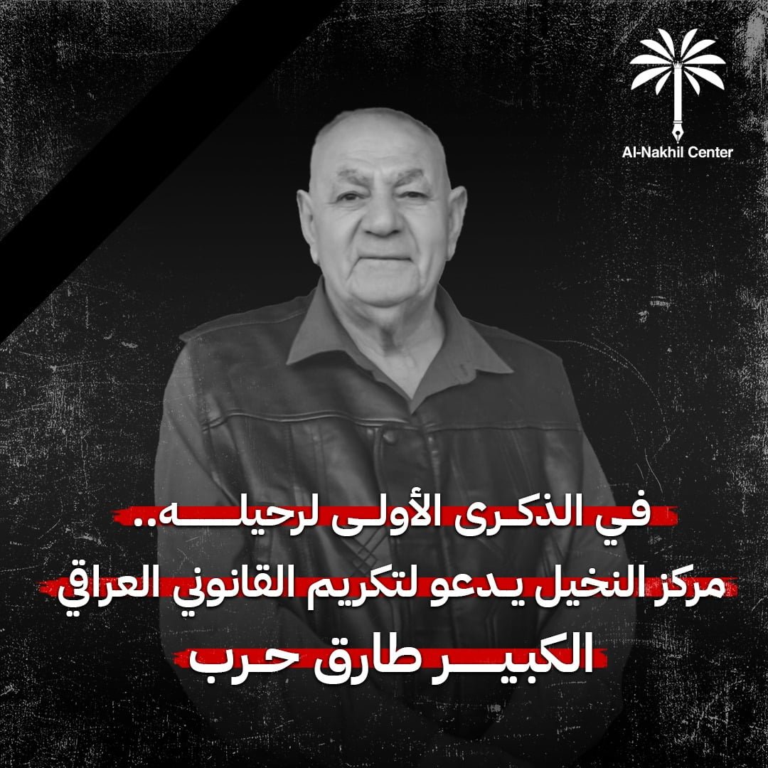 في الذكرى الأولى لرحيله.. مركز النخيل يدعو لتكريم القانوني العراقي الكبير طارق حرب