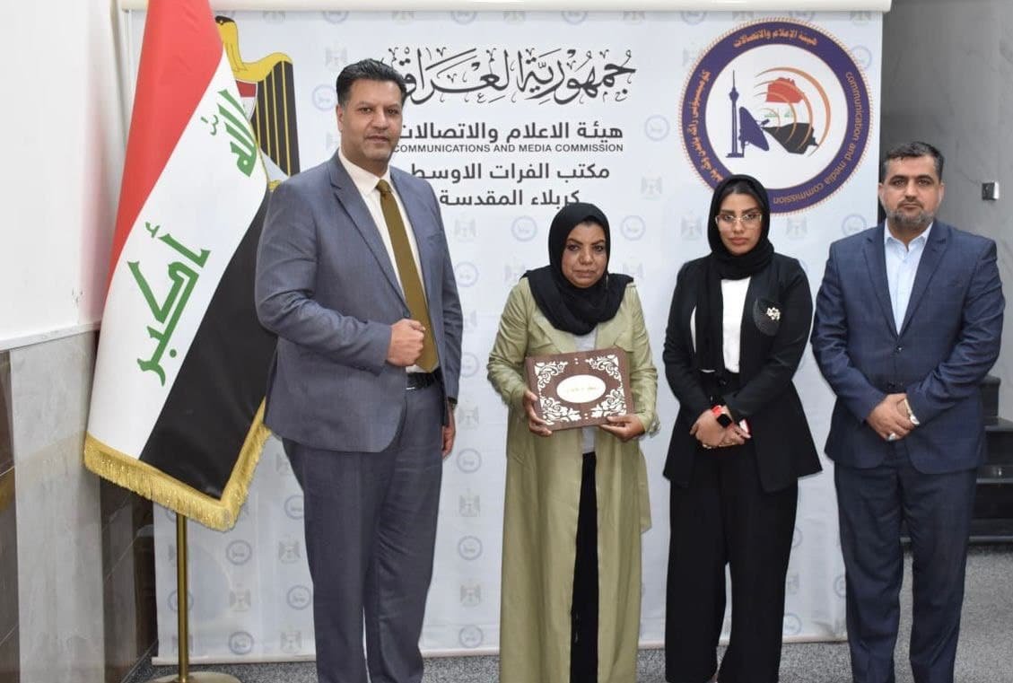 كرمت هيئة الإعلام والاتصالات في محافظة كربلاء المقدسة المصورة “أمل المنصوري” التي شاركت كأكبر مصورة فوتوغرافية رياضية في تغطية خليجي 25 في البصرة.