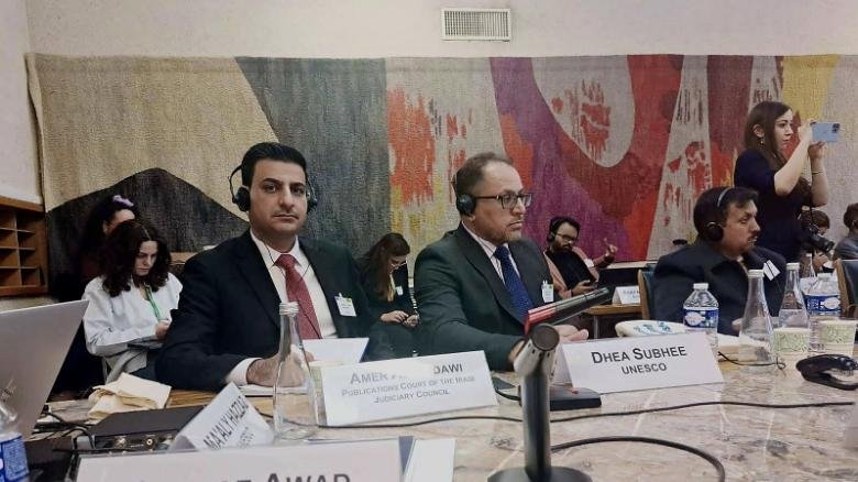 وقال مجلس القضاء في بيان، إن “ممثل مجلس القضاء الأعلى عامر حسن شنته/ قاضي محكمة تحقيق الكرخ الثالثة، شارك في أعمال المؤتمر الدولي لمنظمة اليونسكو ضمن الفريق العراقي الذي ضم مسؤول قطاع حرية التعبير عن الرأي في المنظمة الأممية ضياء السراي”.