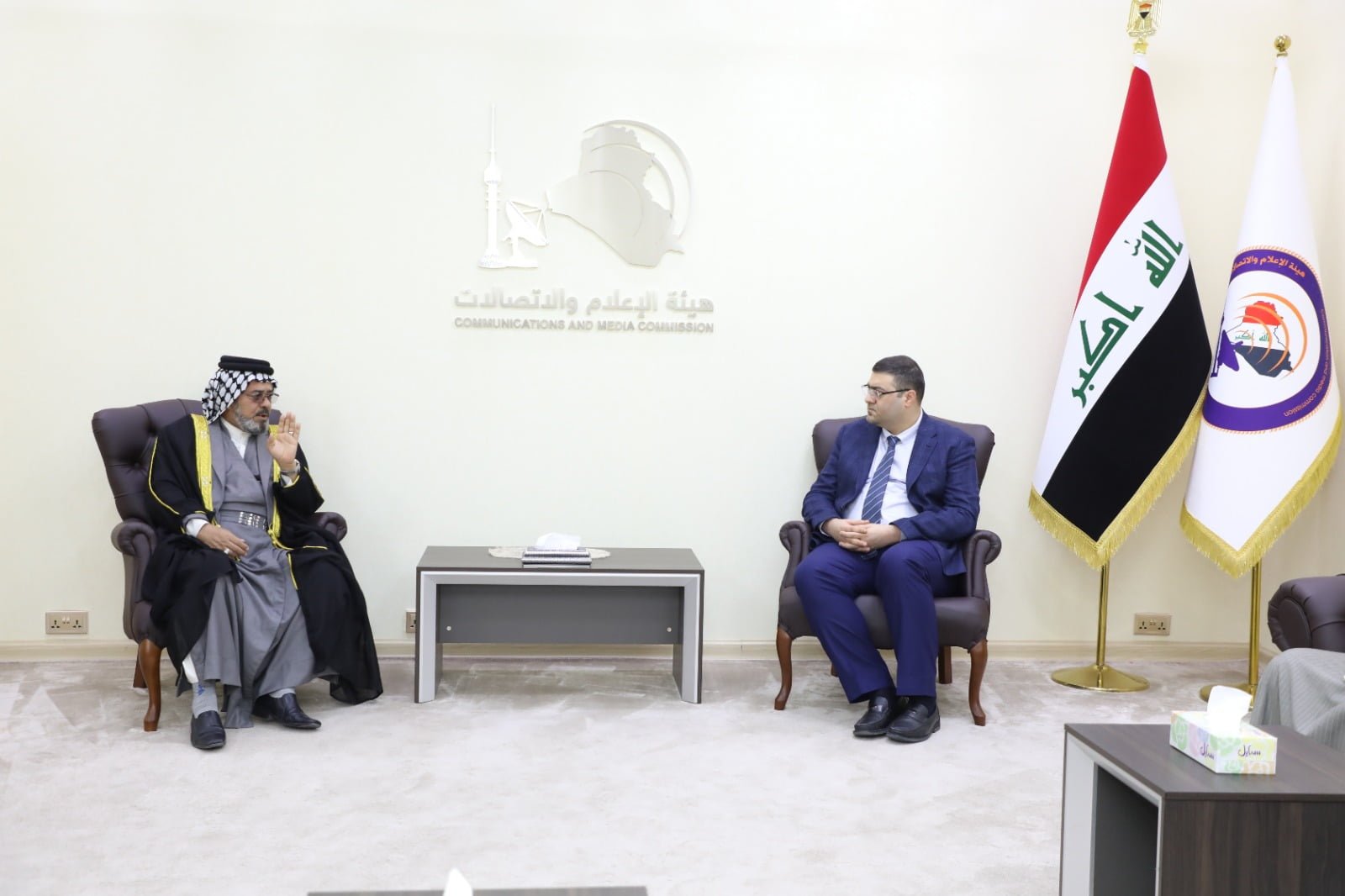 وقالت اعلام الهيئة في بيان، إن “رئيس هيئة الإعلام والاتصالات علي المؤيد استقبل وفداً لشيوخ العشائر وصل الهيئةللمطالبة بحماية النسيج المجتمعي العراقي والحد من التجاوزات التي تطال العشائر الجنوبية عبر بعض القنواتالفضائيات”.