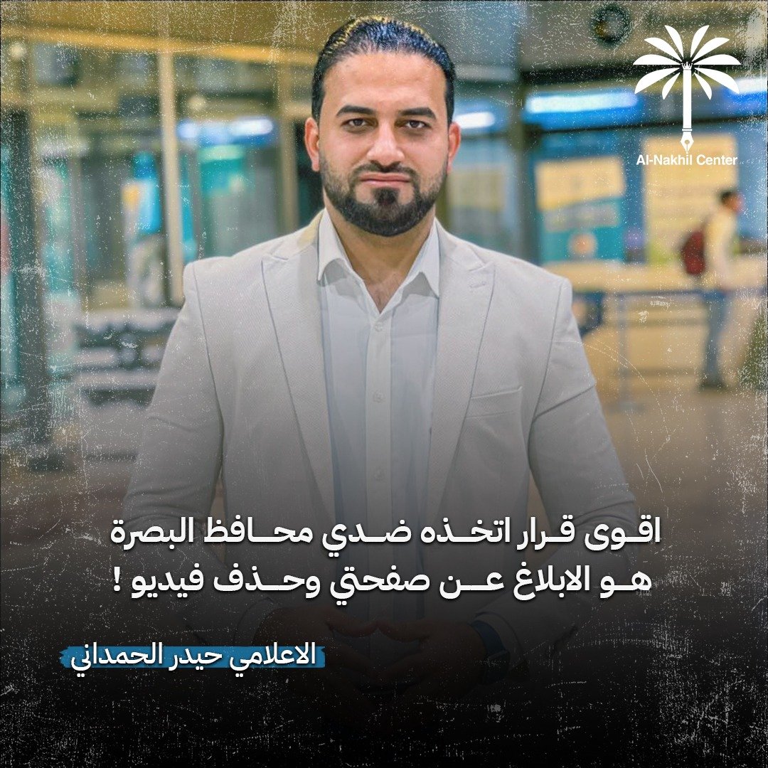 واشار الى أن ” اقوى قرار اتخذه محافظ البصرة ضدي هو الابلاغ على صحفتي وحذف الفيديو”.