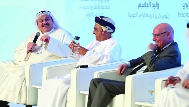 الإعلام هو الإعلام، في الماضي والحاضر والمستقبل، والأزمة الحقيقية التي يعاني منها الإعلام العربي هي أزمة حريات، فالإعلام إبداع والإبداع لا يعرف القيود… بهذه الكلمات استهل رئيس تحرير جريدة «الراي» الزميل وليد الجاسم حديثه في الجلسة الأولى للملتقى، مؤكداً أن «وسائل التواصل الاجتماعي عملت بلا سقف في بدايتها، لذلك توجه الناس إليها بصورة سريعة، والناس تتبع من يلبي طموحاتها، ولو كان فرداً، فيما لا تزال المؤسسات الإعلامية تعاني من القيود، ومن دهاليز القضاء التي قد يدور بها الإعلامي لمدة قد تصل إلى 4 سنوات، وأكثر في حال نشر موضوع وربما يمنع من السفر، وتقف أبسط معاملاته الحكومية وهنا يكون المأزق الحقيقي للعاملين في هذا المجال».