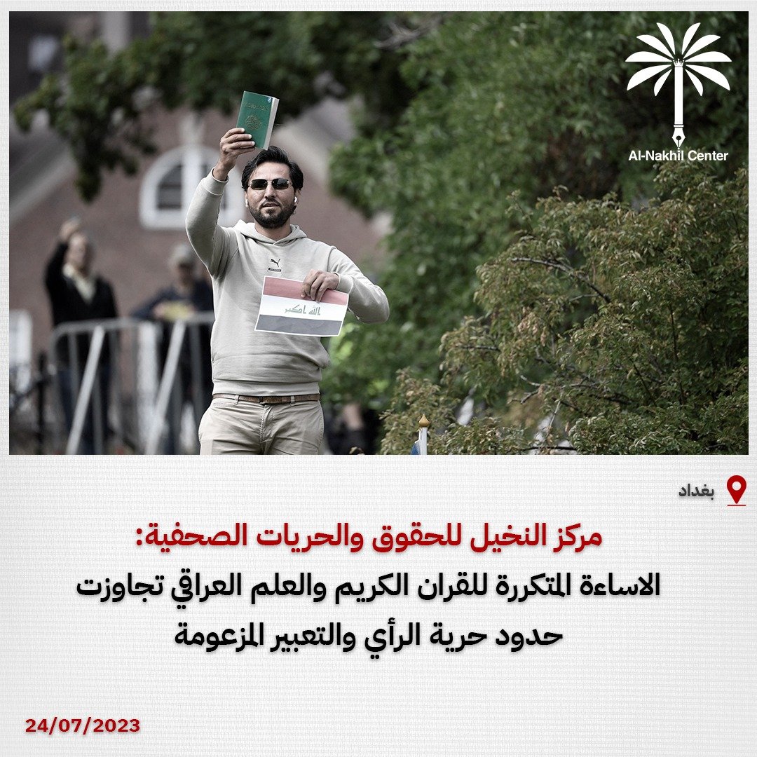 مركز النخيل للحقوق والحريات الصحفية: الاساءة المتكررة للقران الكريم والعلم العراقي تجاوزت حدود حرية الرأي والتعبير المزعومة