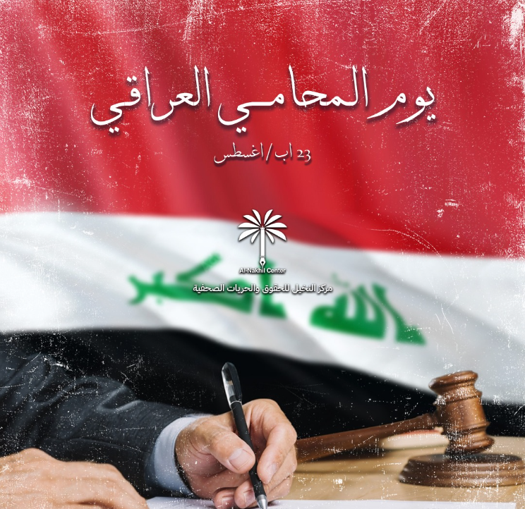 يبارك مركز النخيل للحقوق والحريات الصحفية، حلول الذكرى الـ90 لتأسيس نقابة المحامين العراقيين (يوم المحامي العراقي).