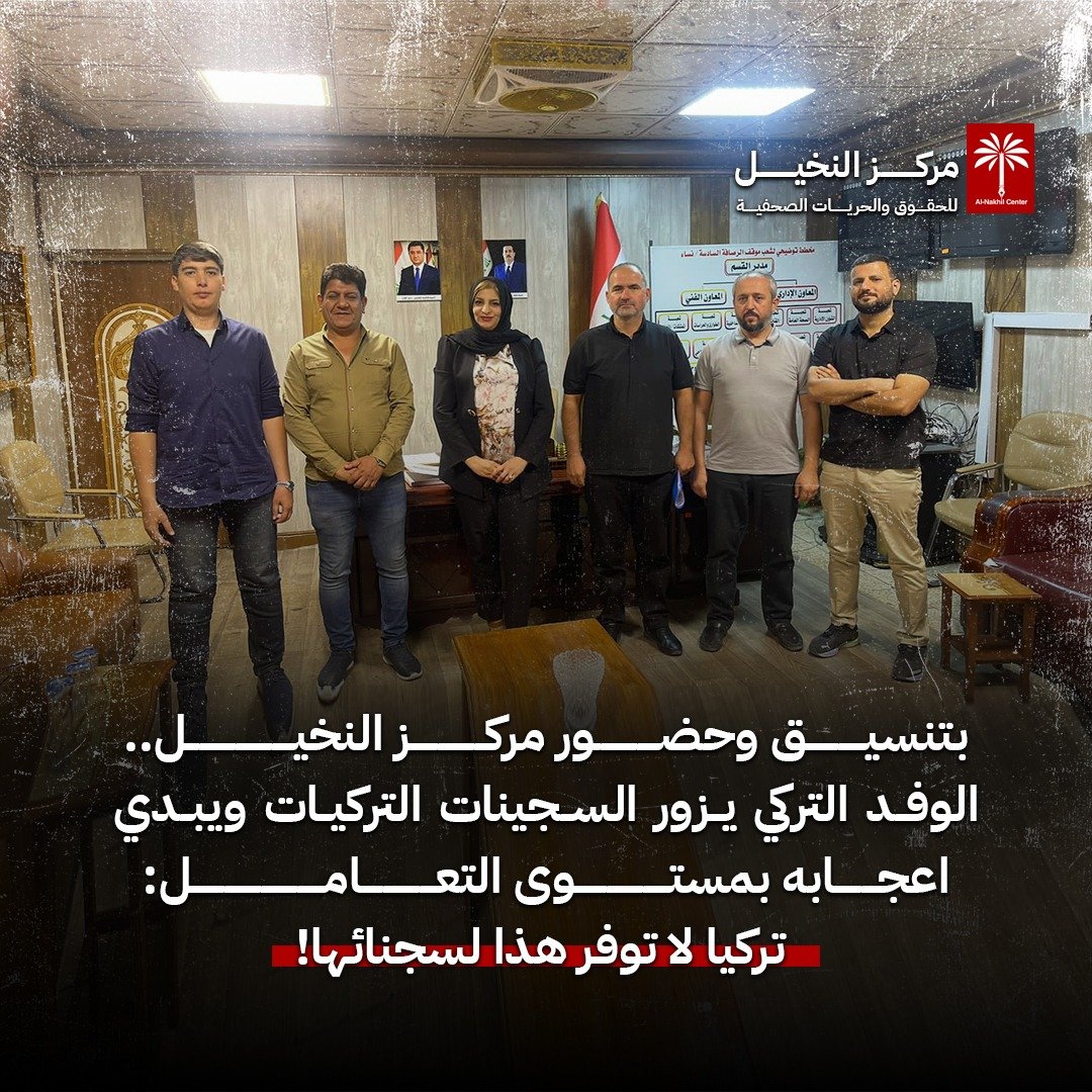 بتنسيق وحضور مركز النخيل للحقوق والحريات الصحفية، زار وفد من المنظمات الحقوقية التركية برئاسة هيئة الإغاثة الإنسانية وحقوق الإنسان والحريات التركية İHH الدولية سجن الرصافة السادس الخاص بالنساء في الرصافة للوقوف على حقيقة الادعاءات التي انتشرت في تركيا بشأن وضع السجينات التركيات (ينتمين لداعش الإرهابي).