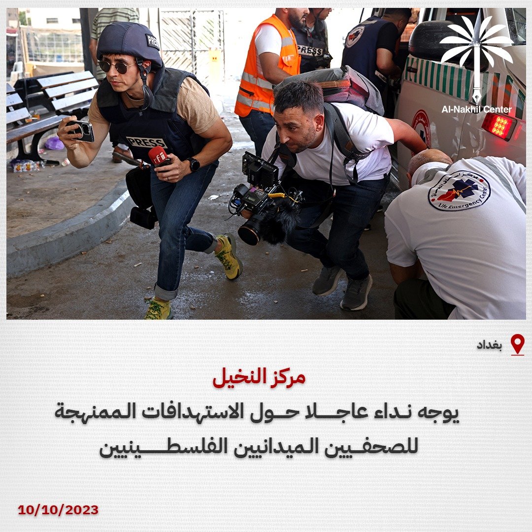 مركز النخيل يوجه نداء عاجلا حول الاستهدافات الممنهجة للصحفيين الميدانيين الفلسطينيين