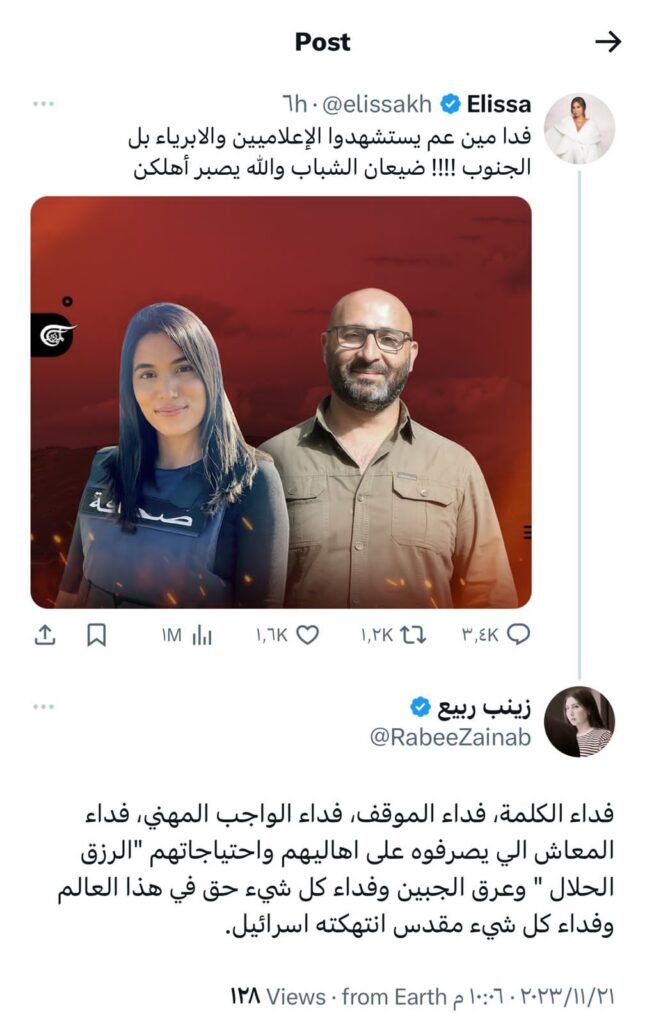 الرئيسية/النخيل نيوز/رئيس مركز النخيل ترد على “اليسا” حول تساؤلها عن استشهاد الصحفيين اللبنانيين: فداء الكلمة والموقف النخيل نيوزنيوز بار رئيس مركز النخيل ترد على “اليسا” حول تساؤلها عن استشهاد الصحفيين اللبنانيين: فداء الكلمة والموقف Facebook Messenger Twitter WhatsApp Email