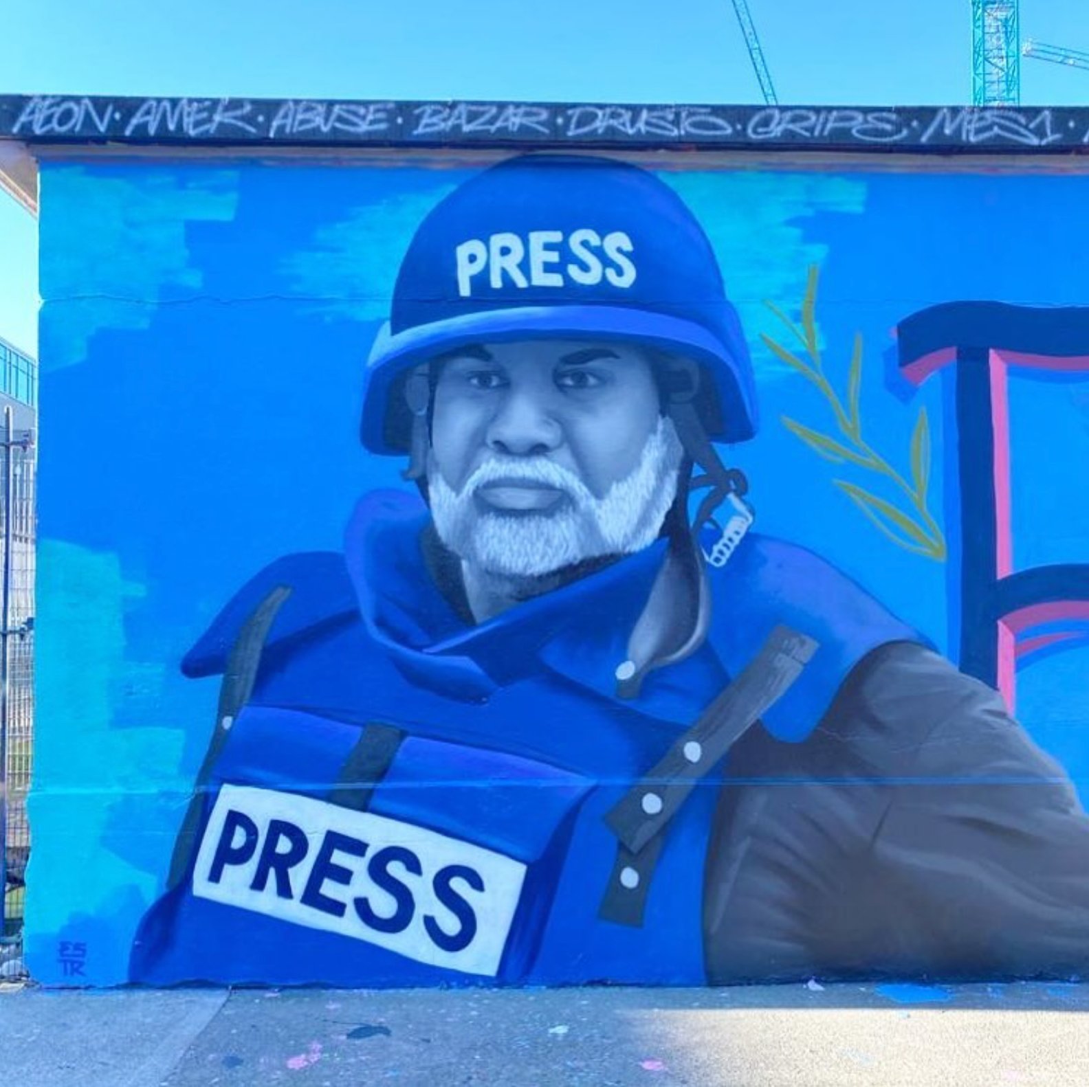 رسمت فنانة الشارع الشهيرة إيمالين بليك جدارية لصورة مراسل قناة الجزيرة في غزة وائل الدحدوح في العاصمة دبلن.