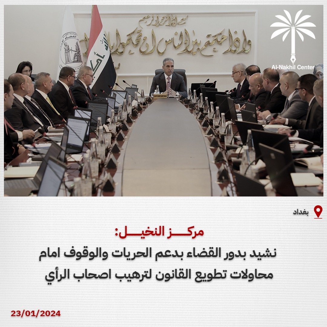 مركز النخيل: نشيد بدور القضاء بدعم الحريات والوقوف امام محاولات تطويع القانون لترهيب اصحاب الرأي