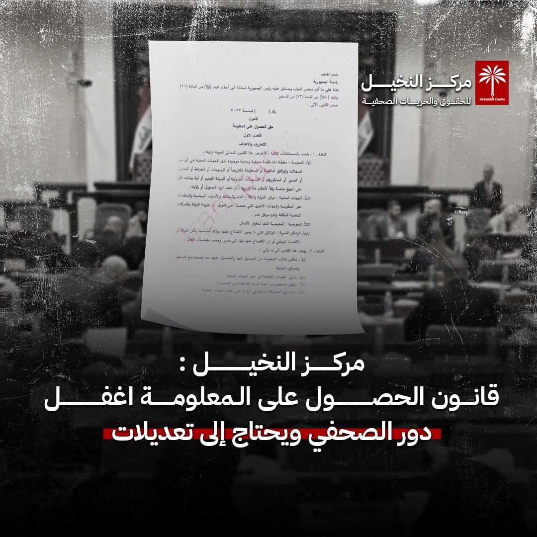 مركز النخيل: قانون الحصول على المعلومة اغفل دور الصحفي ويحتاج إلى تعديلات