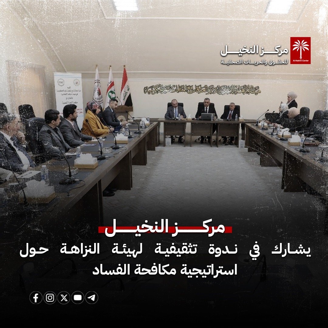 مركز النخيل يشارك في ندوة تثقيفية لهيئة النزاهة حول استراتيجية مكافحة الفساد