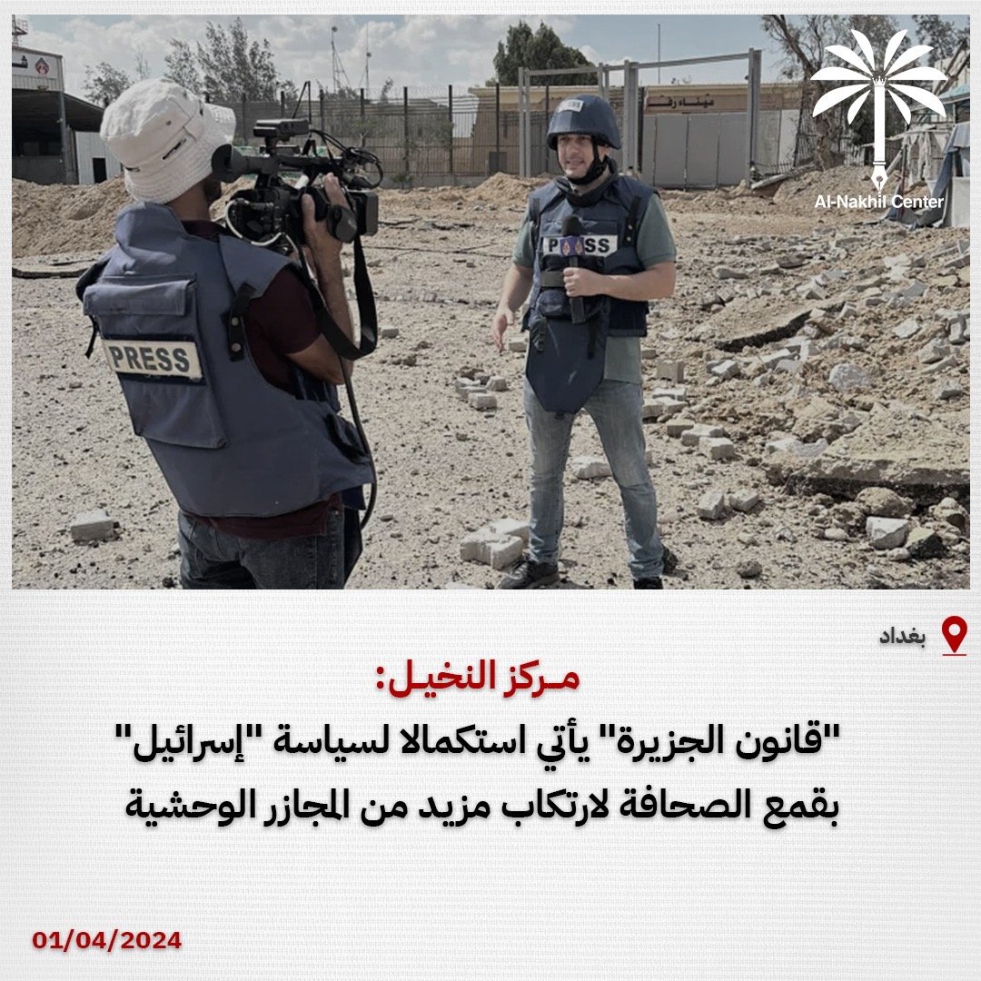 مركز النخيل: “قانون الجزيرة” يأتي استكمالا لسياسة “إسرائيل” بقمع الصحافة لارتكاب مزيد من المجازر الوحشية
