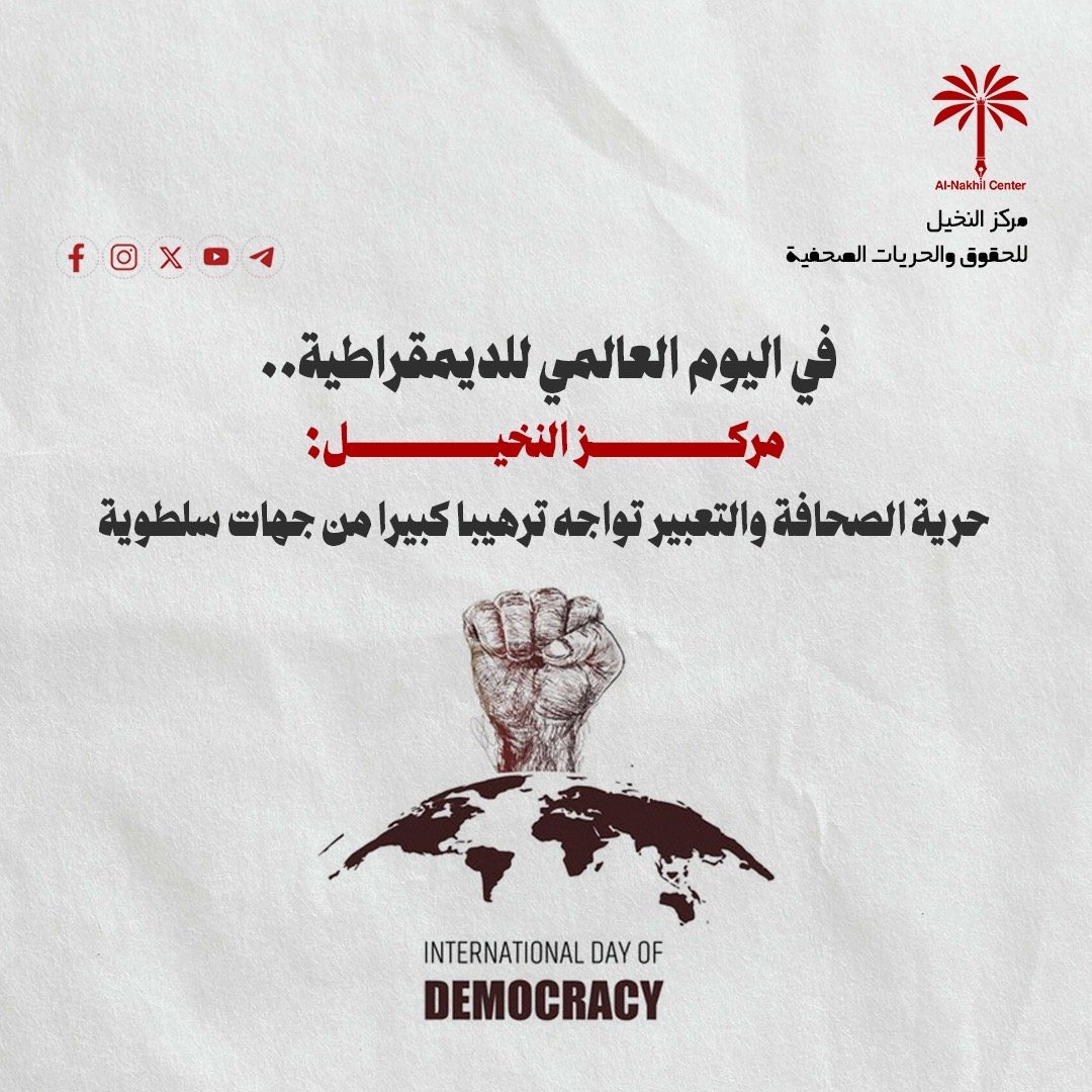 في اليوم العالمي للديمقراطية.. مركز النخيل: حرية الصحافة والتعبير تواجه ترهيبا كبيرا من جهات سلطوية