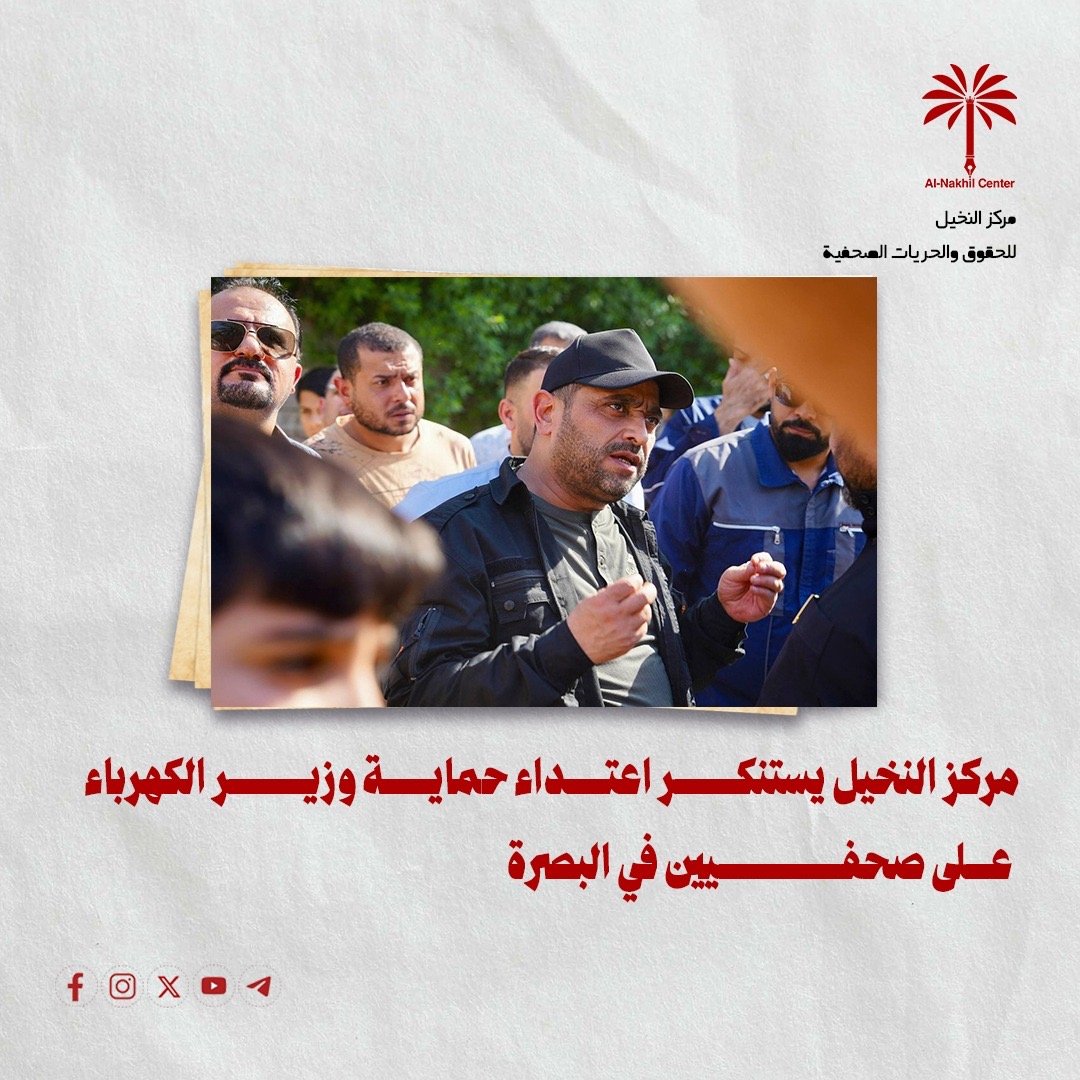 مركز النخيل يستنكر اعتداء حماية وزير الكهرباء على صحفيين في البصرة