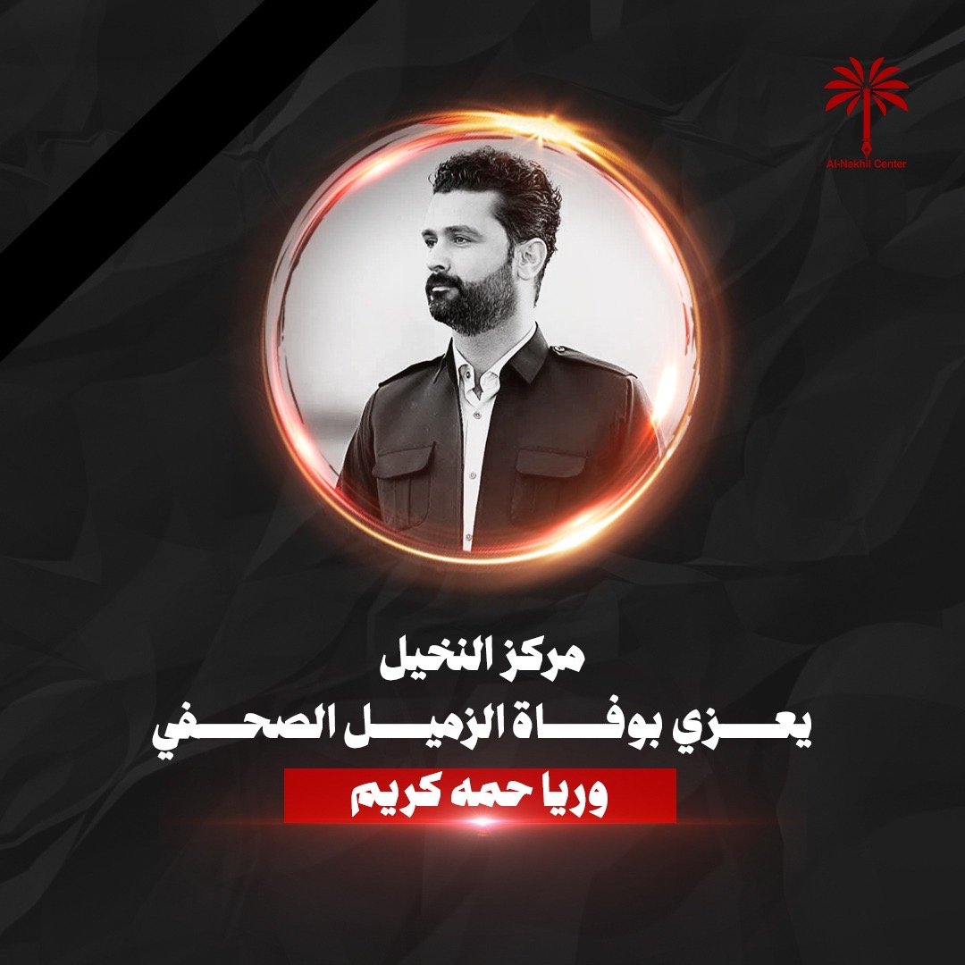 مركز النخيل للحقوق والحريات الصحفية يعزي بوفاة الزميل الصحفي وريا حمه كريم