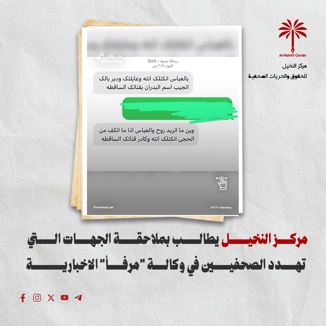 مركز النخيل يطالب بملاحقة الجهات التي تهدد الصحفيين في وكالة “مرفأ” الاخبارية