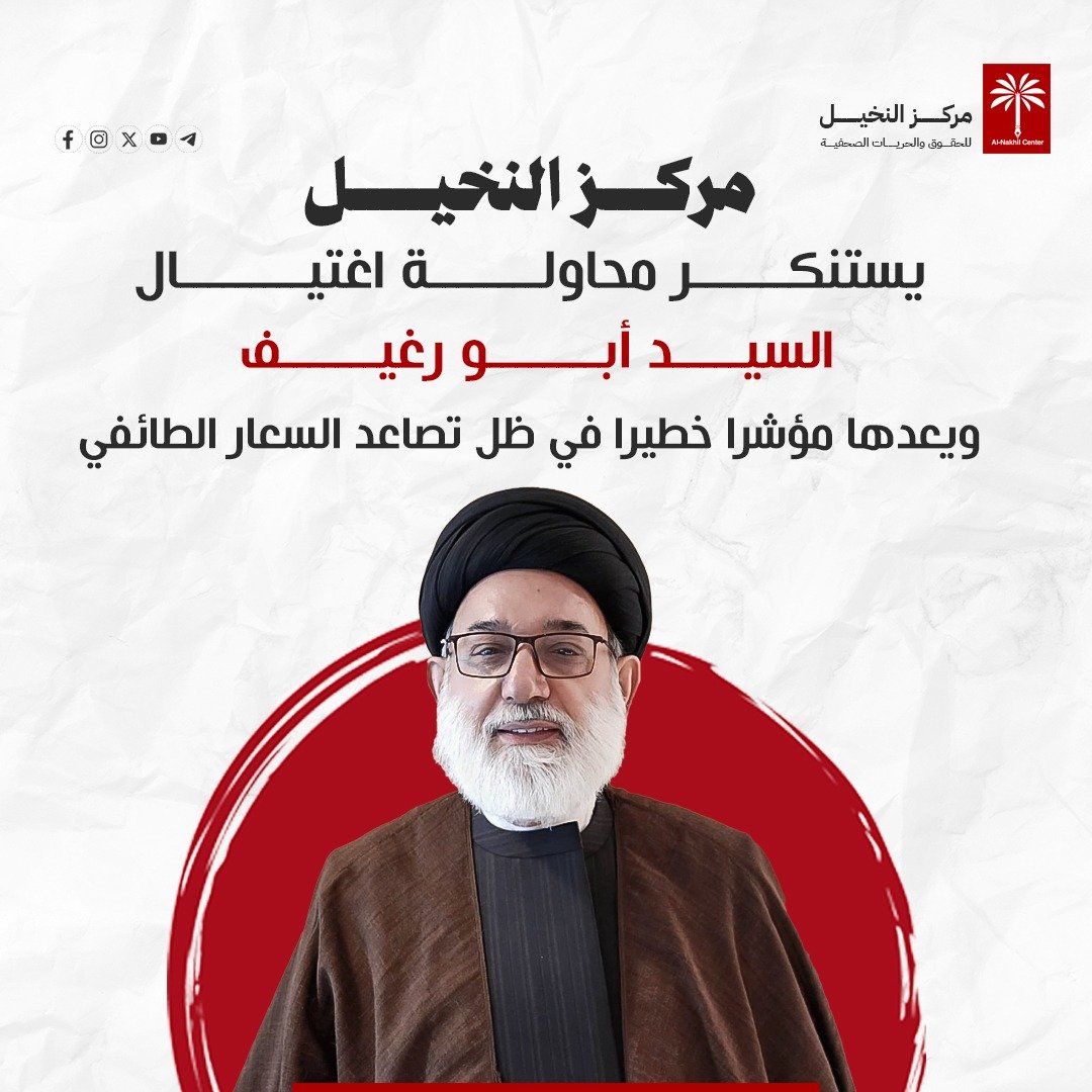مركز النخيل يستنكر محاولة اغتيال السيد أبو رغيف ويعدها مؤشرا خطيرا في ظل تصاعد السعار الطائفي