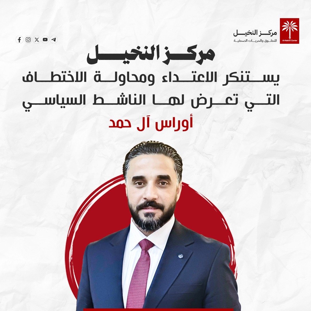 مركز النخيل يستنكر الاعتداء ومحاولة الاختطاف التي تعرض لها الناشط السياسي أوراس آل حمد