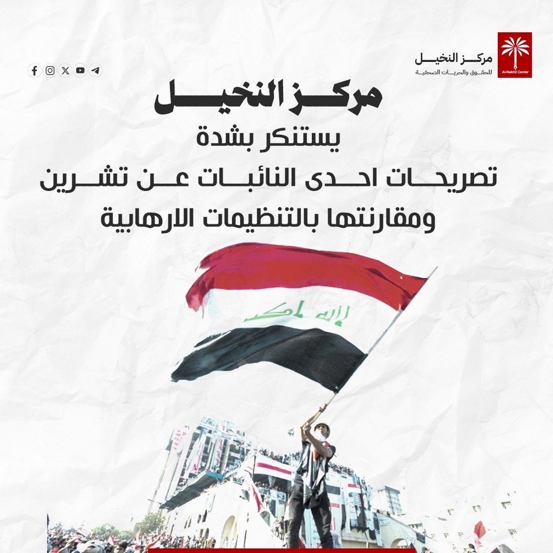 مركز النخيل يستنكر بشدة تصريحات احدى النائبات عن تشرين ومقارنتها بالتنظيمات الارهابية