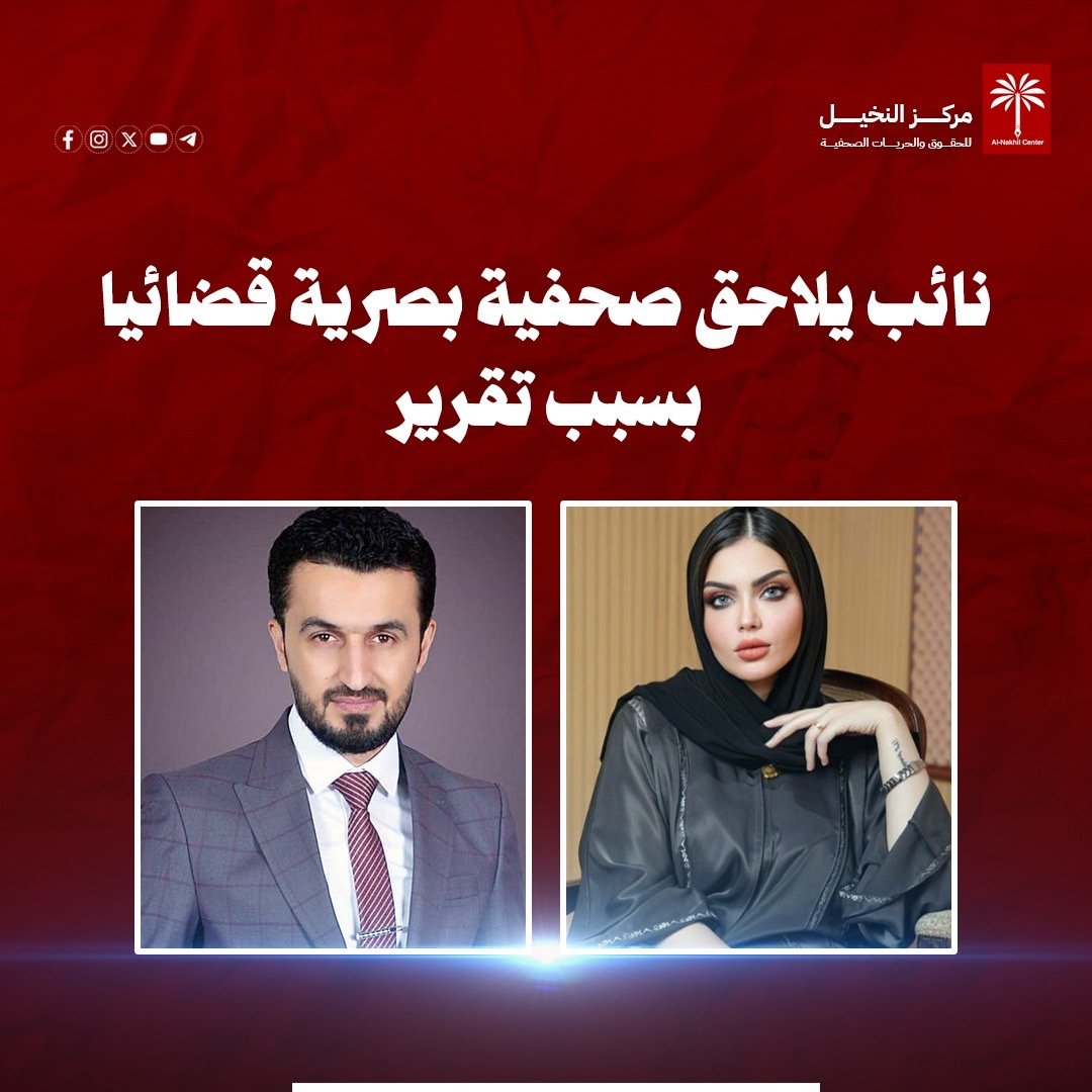 يُعرب مركز النخيل للحقوق والحريات الصحفية، عن استغرابه إزاء الدعوى القضائية التي تقدم بها النائب عن محافظة البصرة مصطفى جبار سند ضد الزميلة الصحفية هديل المولى، المدير التنفيذي لقناة “بصرة 365” الفضائية.