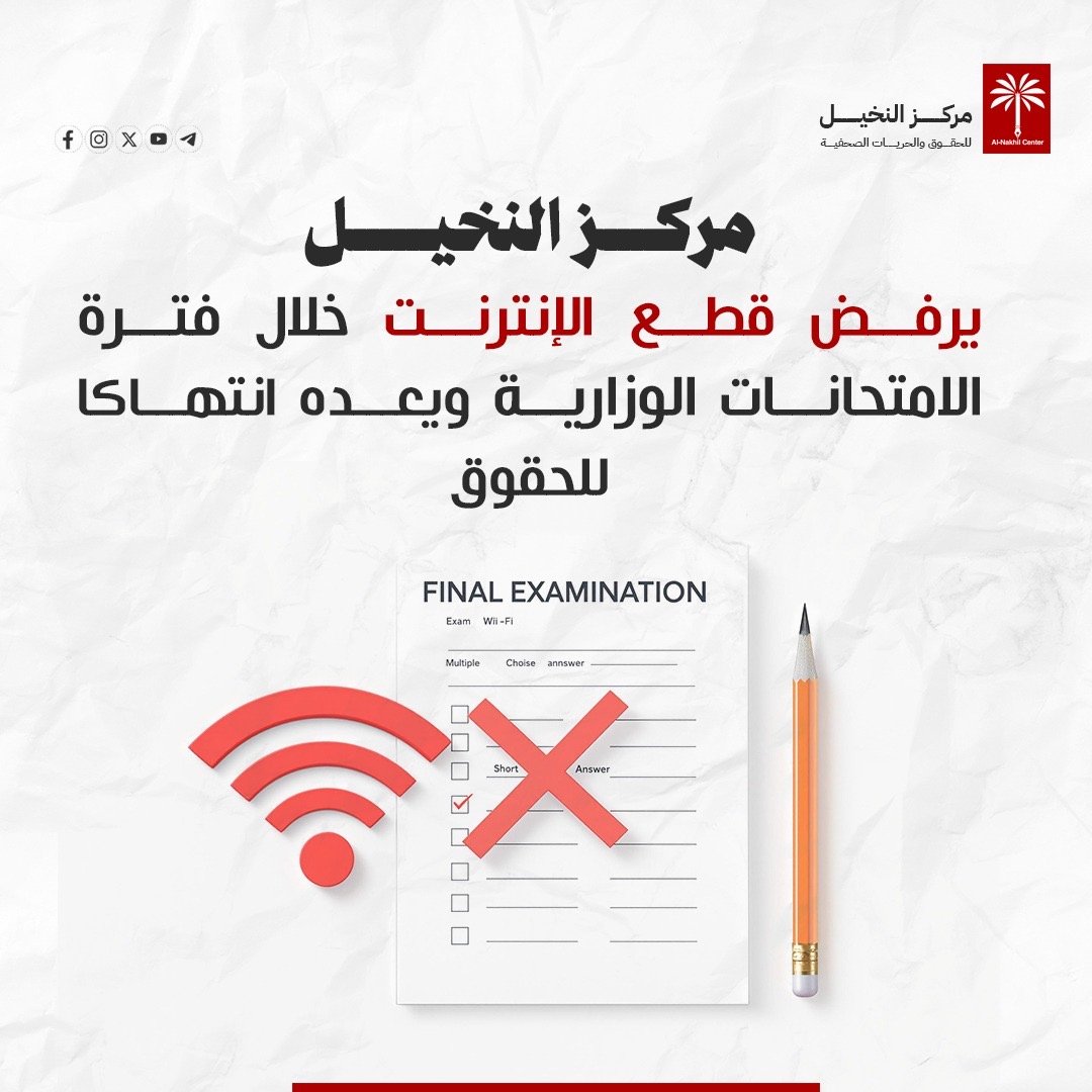 مركز النخيل يرفض قطع الإنترنت خلال فترة الامتحانات الوزارية ويعده انتهاكا للحقوق