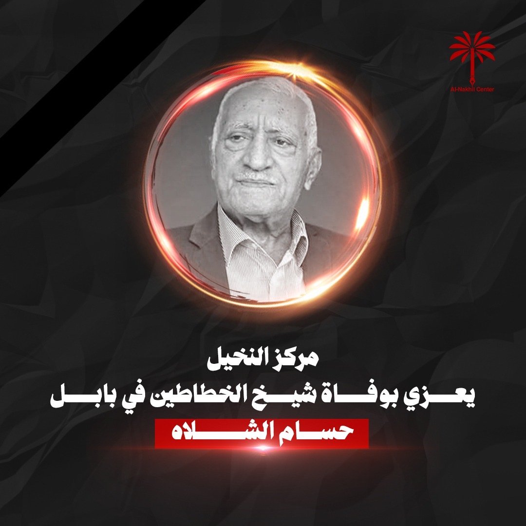 مركز النخيل للحقوق والحريات الصحفية يعزي بوفاة شيخ الخطاطين في بابل حسام الشلاه