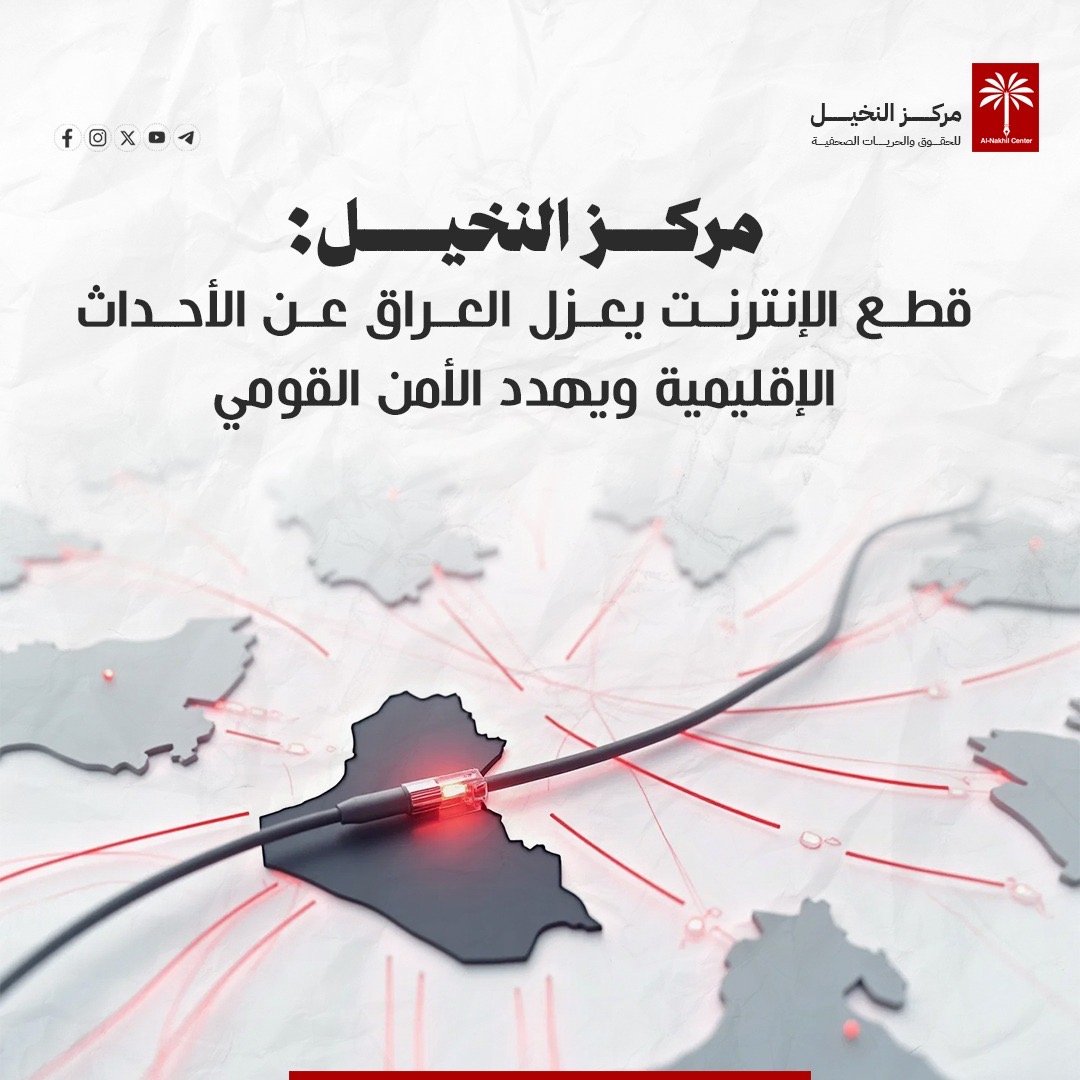 مركز النخيل: قطع الإنترنت يعزل العراق عن الأحداث الإقليمية ويهدد الأمن القومي