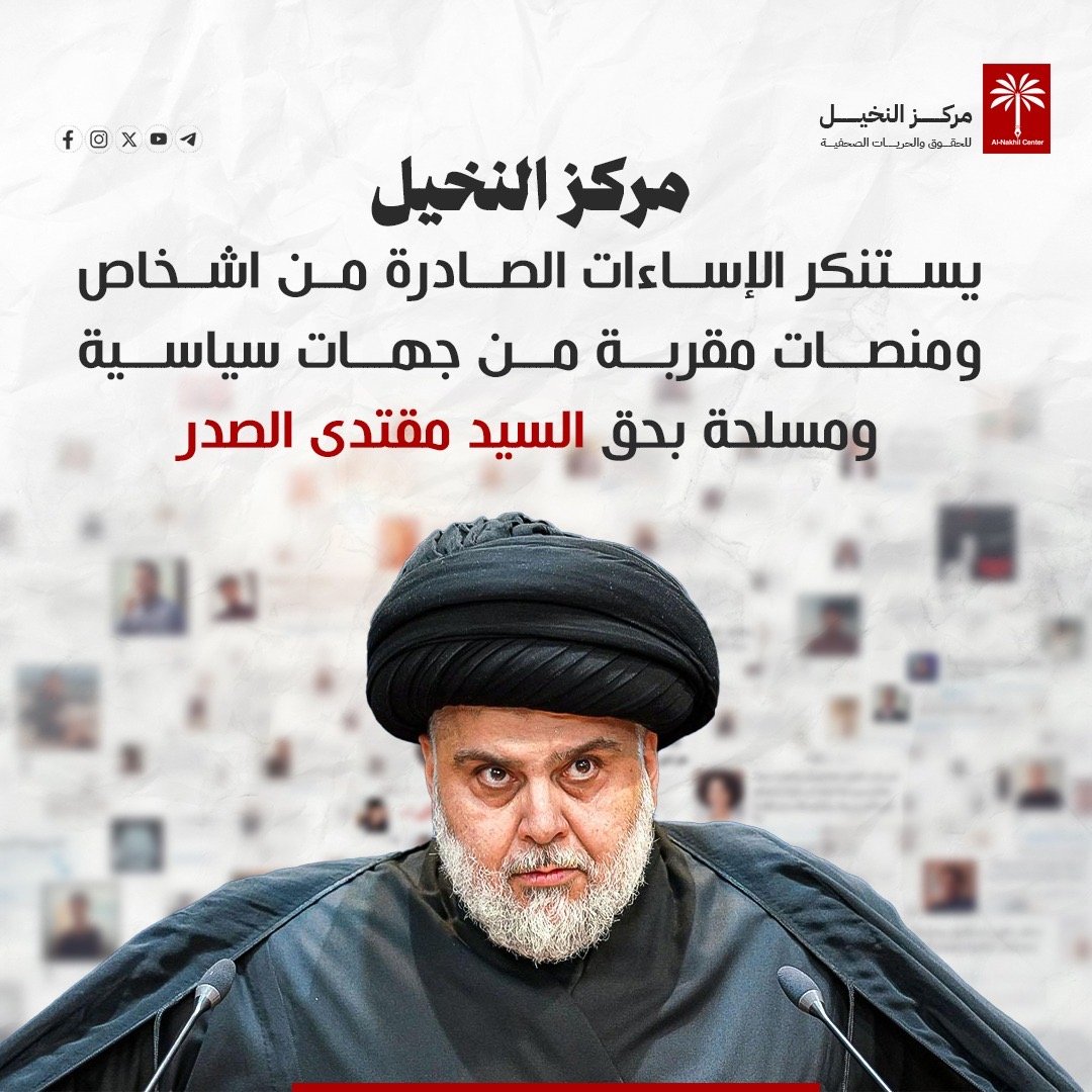 مركز النخيل يستنكر الإساءات الصادرة من اشخاص ومنصات مقربة من جهات سياسية ومسلحة بحق السيد مقتدى الصدر