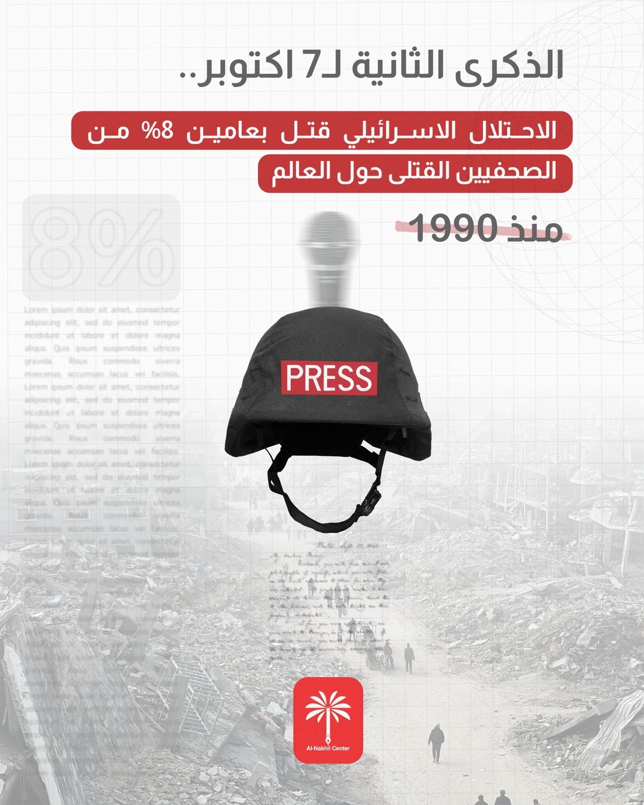 يستذكر مركز النخيل للحقوق والحريات الصحفية، في الذكرى الثانية لاحداث 7 اكتوبر، بألم وأسف شديدين الارواح التي أزهقتها آلة الحرب ولاسيما المدنيين والنساء والاطفال، والصحفيين، الذين باتوا اهدافًا مقصودة لنيران الاحتلال الاسرائيلي.