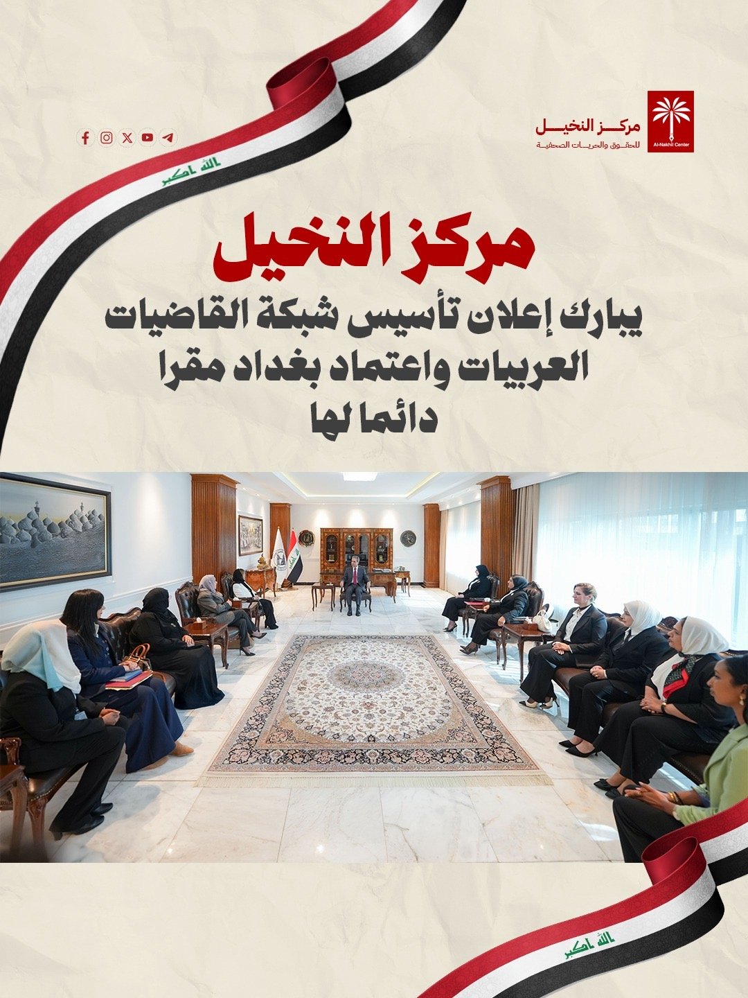 مركز النخيل يبارك إعلان تأسيس شبكة القاضيات العربيات واعتماد بغداد مقرا دائما لها