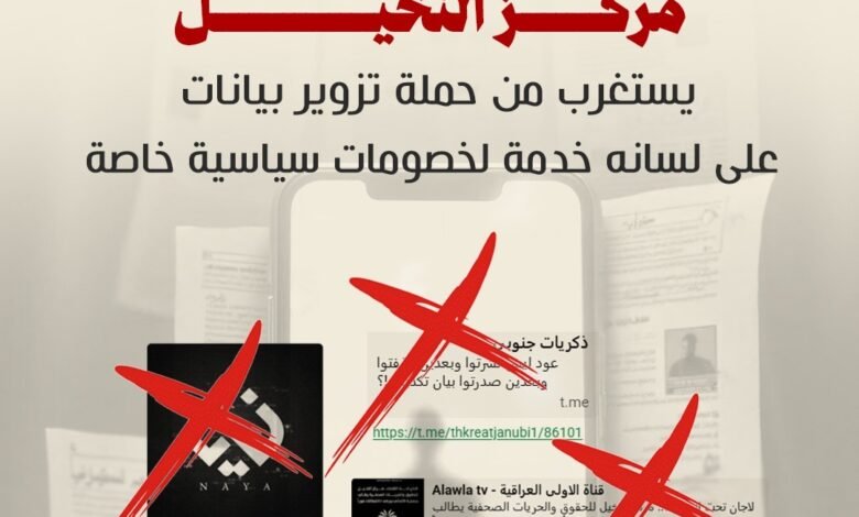 أكمل القراءة »يعبّر مركز النخيل للحقوق والحريات الصحفية، عن استغرابه الشديد من قيام منصات ومواقع مجهولة بتزوير بيانات ومواقف تخدم سردياتها وخصوماتها…